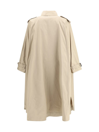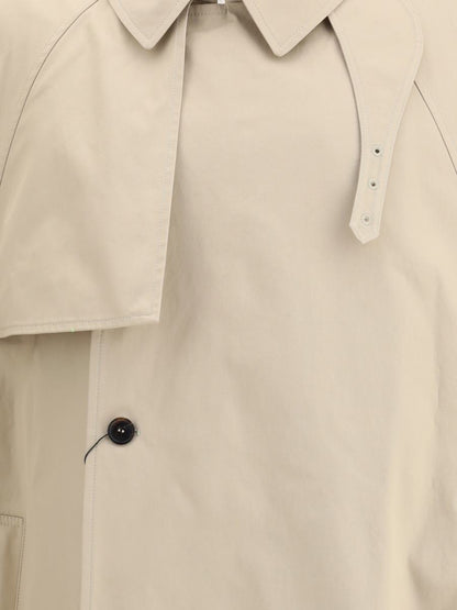 SAINT LAURENTS TRENCHCOAT I BOMULLSTWILLE OMTOLKER DEN KLASSISKA SILHUETTEN MED STRUKTURERADE DETALJER OCH EN MILITÄR ELEGANS. TILLVERKAD AV CERTIFIERAD BOMULL OCH HAR KAPEDESIGN MED SPETSIG KRAGE OCH JUSTERBAR HAKREM, VINDTÄT FLAK, VADDERADE AXLAR OCH ARMMUDDAR. KNAPP OCH HYSKKNAPP VID KRAGEN, TILLSAMMANS MED TVÅ PROFILERADE FICKOR, KOMPLETTERAR ETT RAFFINERAT OCH FUNKTIONELLT PLAGG.