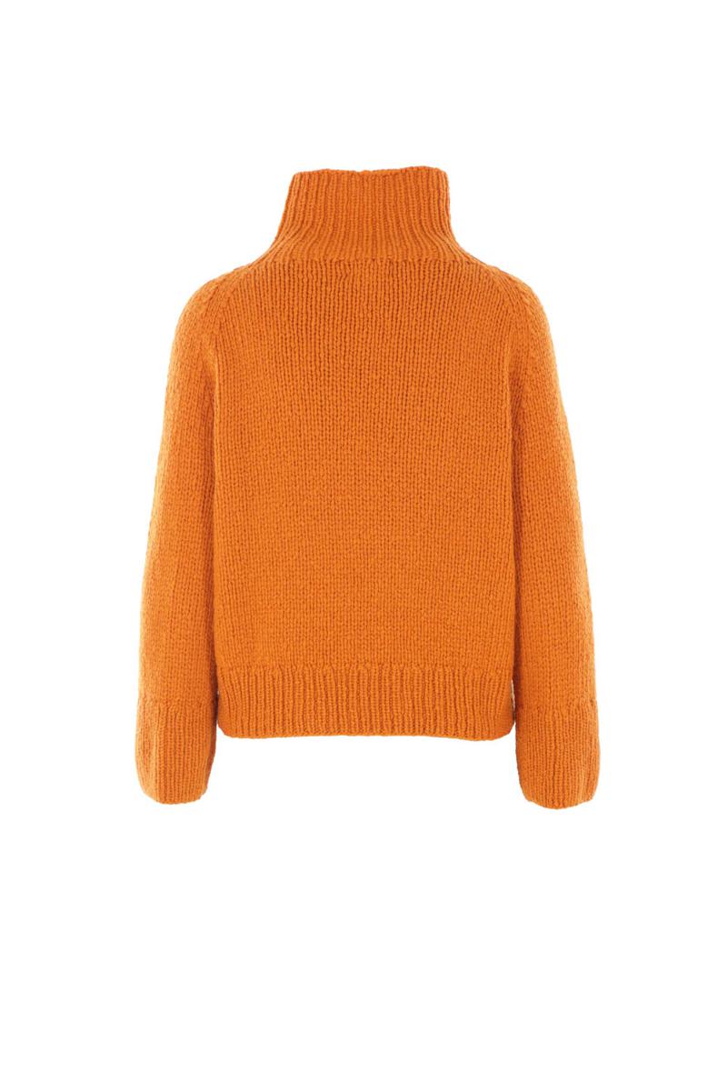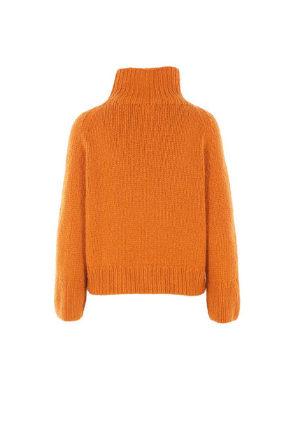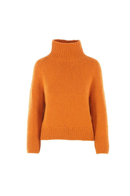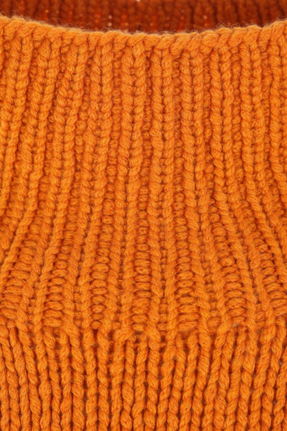 Handgjord Wommelsdorff-tröja i orange kashmirstickning. Med fuskhalsringning, långa ärmar och ribbade kanter.